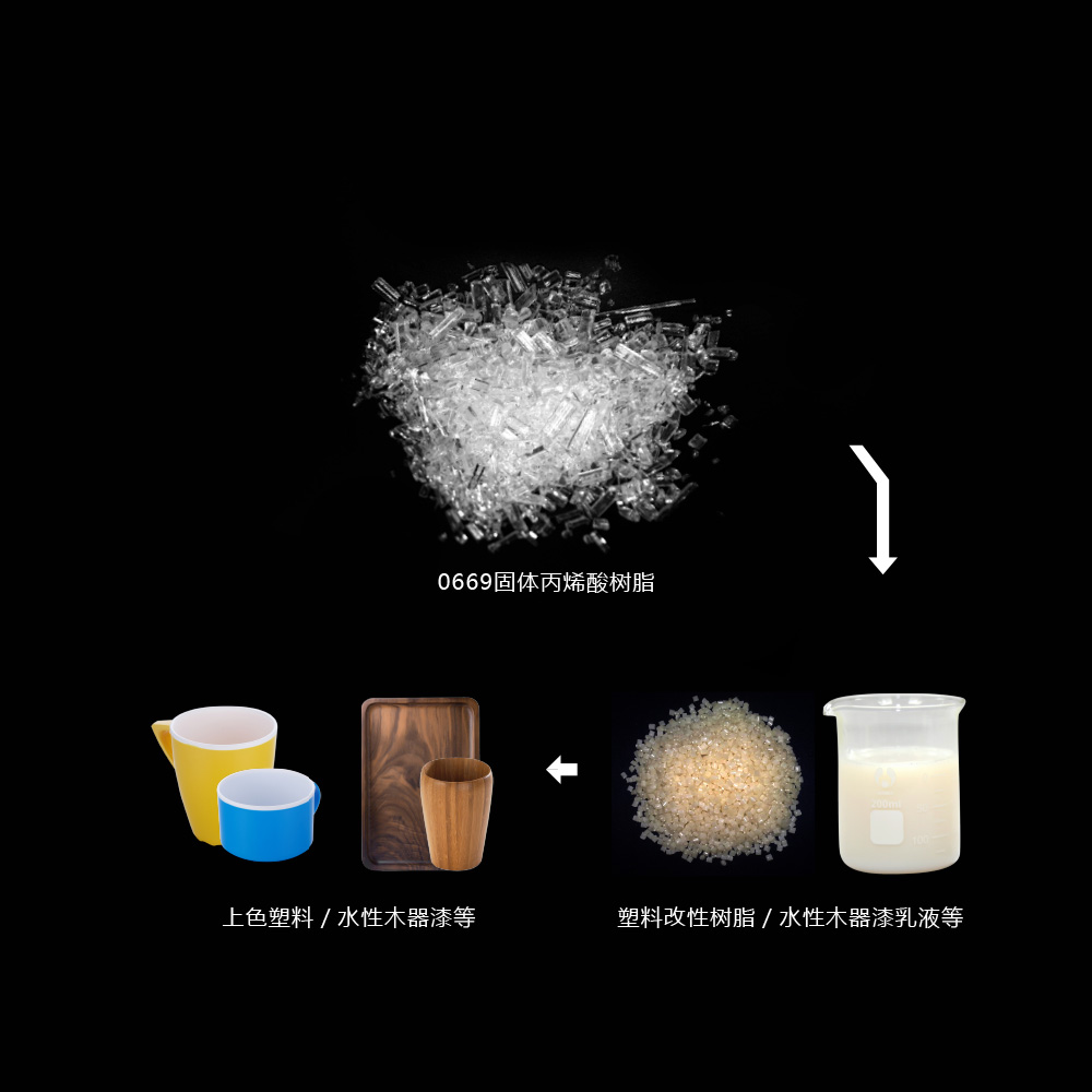 采用特殊工艺,生产过程中不引入有机溶剂,分子量与分子量分布指数严格控制的马来酸酐改性丙烯酸树脂,主要用于耐温乳液合成和预印水性油墨/上光油制备,以及塑料改性和水性木器漆等相关领域。